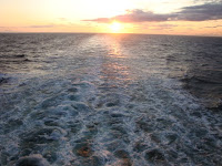 That was the warm-up for this evening. I had decided after dinner to go down to level 6 and walk around the deck for a few laps. As I was rounding a corner I caught something in the water. I ran to the rail and saw a beautiful whale jump up into the air. I started to scream and squeal out of sheer exuberance. I had no idea if anyone was around me or not I just was too excited to keep my joy to myself. There was another lady walking along who joined me at the rail as we continued to watch for a few minutes as probably at least three whales jumped up in the air, showing off their docile fin for us and one showed us most of his entire body! It was so cool! We both giggled as the whales gave us quite a wonderful show.