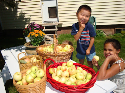 One of our prayers was that God would hold this sweet little farmhouse that was on the market till Pete and Chelsea’s home sold. For months we prayed and waited and that little farmhouse just didn’t sell. =) God totally answered our prayers and now Chelsea lives “around the corner” from me in that adorable and cozy little farmhouse. Just one more added perk of the farmhouse was that it had two big apple trees. Yippee Jesus!! We are going to make pies and can lots of applesauce for winter!!! Yummmm!