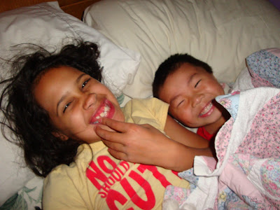 hearing Isaiah mimic Emma who had come to tuck him in….”Isaiah stop saying everything I say” “Isaiah stop saying everything I say”; “I’m serious Isaiah” “I’m serious Isaiah”; “Isaiah, really, stop doing that!” “Isaiah, really, stop doing that!”; “Mom!” “Mom!”; “Mom, Isaiah won’t stop copying me!” “Mom, Isaiah won’t stop copying me!” “Make him stop Mom!” “Make him stop Mom!”….(his little personality continues to make us laugh!)