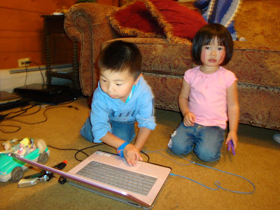 The innocent “playing with my car” routine…..Mommy’s computer is totally tempting us though, it’s begging us to come play…..Let me think about this….maybe just a quick trip to a blogspot…..