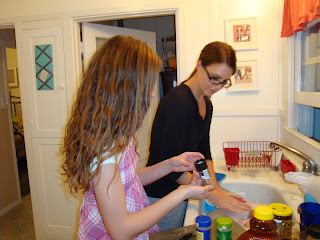 Helping big sis make Ch*x Mix…… Their sweet little kitchen (notice how those cottage windows open)