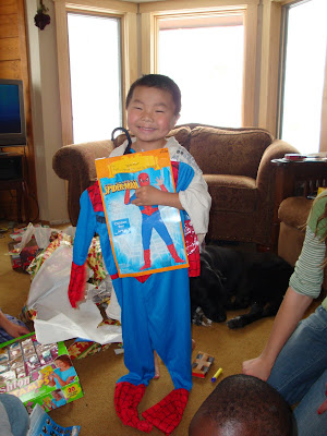 The presents are slowly opened as we each watch one person at a time open each present. Elijah and Elizabeth were clueless about presentswhen they came home , but they had two presents from friends this past week and so today they were much more into them, even kind of eager to dig in…..