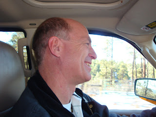 He thought he was so funny, I was trying to take that top picture while turned around and he gently started up and I still banged backwards into the dashboard….look at just how funny he thought it all was….how ’bout a little shoulder squeeze dude?