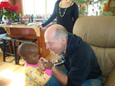 Welcome Home! It looks like Christmas is a week early this year.:) Thank you so much for putting pictures up. I was dying to see the kids. I can't wait to meet them! Welcome back to baby-land (diapers, cribs etc…). We missed you guys. Have a wonderful couple days relaxing and showing E & E their new family. What a blessing!