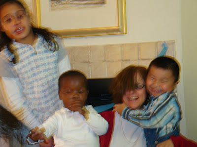 Isaiah and Elizabeth fixing my hair for the photo op….