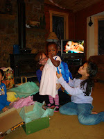 Ann and Daniel and Ben) – making us all long for Spring!Elijah LOVED the cake and ice creamDestini and Elijah Rob playing with Elizabeth and her dollies…