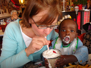 1. sweet little man!!!!!!!!!! Love Love Love that icecream face. He and J-man would get along just fine.. either that or someone would get hurt fighting over which shake is theirs. When we finally make it out that way, you ahve to promise to take us out for shakes(and fries.. I spotted them too Lisa.lol)