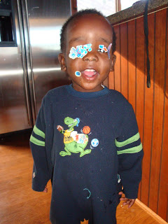 I love how they put all of the stickers on their eyes! SO cute! I am praying for the girls… strep is no fun and throat pain is nasty. Praying for you guys! lv, jen