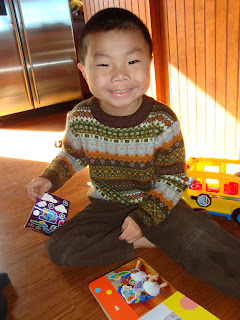 New way to use stickers! Very cute! Isaiah looks so handsome in his winter sweater!!
