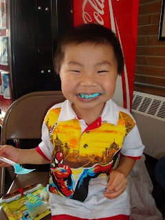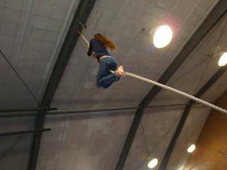 Isaiah was invited to a birthday party on Saturday – infact the entire family was invited! It was so much fun! Infact Dw said, “Wow, that was the ‘funnest’ party we have been to in a long, long, long time! It was just what we needed!” It was held at a Gymnastics Center and from the pics you can tell it was lots of fun! (Liberty was at a surprise birthday party held at a cooking school – super fun too!)Emma climbs to the top and rings the bell…. Graham rings the bell too….