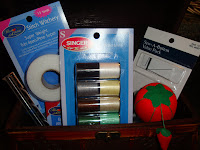 Yesterday at church Michelle came up to me. She had a gift for me. I peaked inside and almost fell over.It was a little chest basically identical to the one I had thought of and missed. I opened it and it was chock full of basic sewing supplies. I got all teary-eyed. I had never said a word about missing the chest or getting a sewing kit to anyone, and here she had put one together and she couldn’t have picked a more perfect box.
