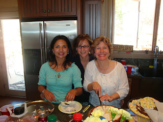 Liberty helping Ann make fruit tray appetizers……Ann sure knows how to do them up!Irma and DwOh, if only I could tell you all what we were laughing about….