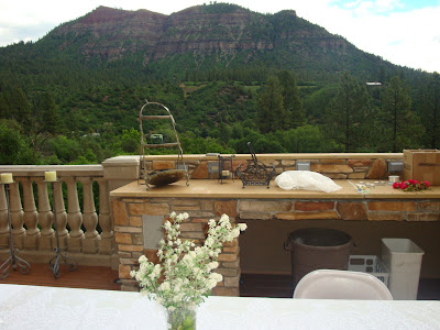 From the front door looking out…….Heading into the front foyer…….From the front door to the right…..Looking back toward the front foyer….The family room….Isaiah, Liberty and Luke (Laura’s son) playing chess before the festivities….The kitchen…..Reception set for the balcony…..(yes, those were dark rain clouds moving in) The flowers….(we bought the carnations…the rest we picked from the roads in the countryside…)