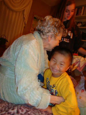 After a total of 2,146 miles (included 200 extra miles just to go get the rental) we arrived at Dw’s childhood home where Grandma and Uncle Mark still live. Dw’s mom is 94 and as you guys know, Uncle Mark is 70. One day, Uncle Mark will come to live with us. He is a treasure and we are having lots of fun with him. As I am typing this Elizabeth was climbing all over him. And yes, I am noticing that I think my camera has a focus problem. Arggh. I need to get it fixed before I go to Ch*na for Miss Jubilee (keep praying, the paperwork should be in Beijing today).