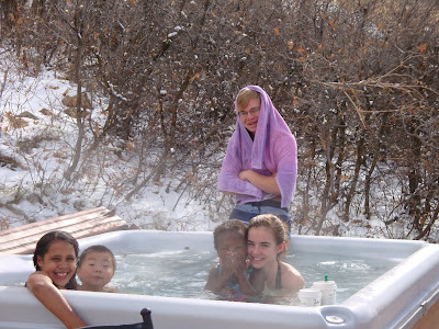 LOVE that picture of the hot tub in the snow- you almost make it look appealing! 😉