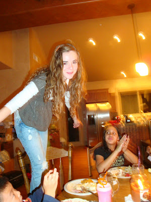 Sophia was so taken with the post of Emma taking a bow on the table at your birthday dinner she has started that tradition in our home… hope you don't mind but I too was standing on the table yesterday,LOL