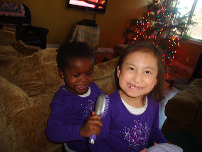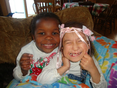 And these two little sisters? Becoming sweet buddies….they like dressing alike and I love that!! They are about the same size….so is Isaiah….so it feels like I have triplets -unbelievable!