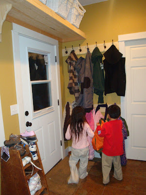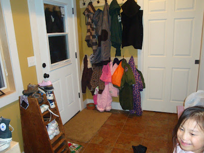7. I love a place for everything! We too have LOTS of shoes, mittens and just plain THINGS that must get out the door each day. I am SO VERY THANKFUL for hooks and baskets and shelves!
