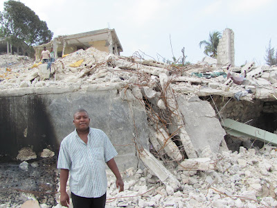 Here is another man, standing in front of where his home once stood. If Dw understood him right, he lost his family inside the home.