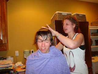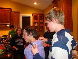 This particular night they decided to make cutting Tim’s hair a group effort….