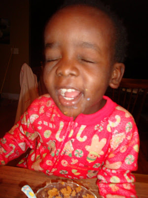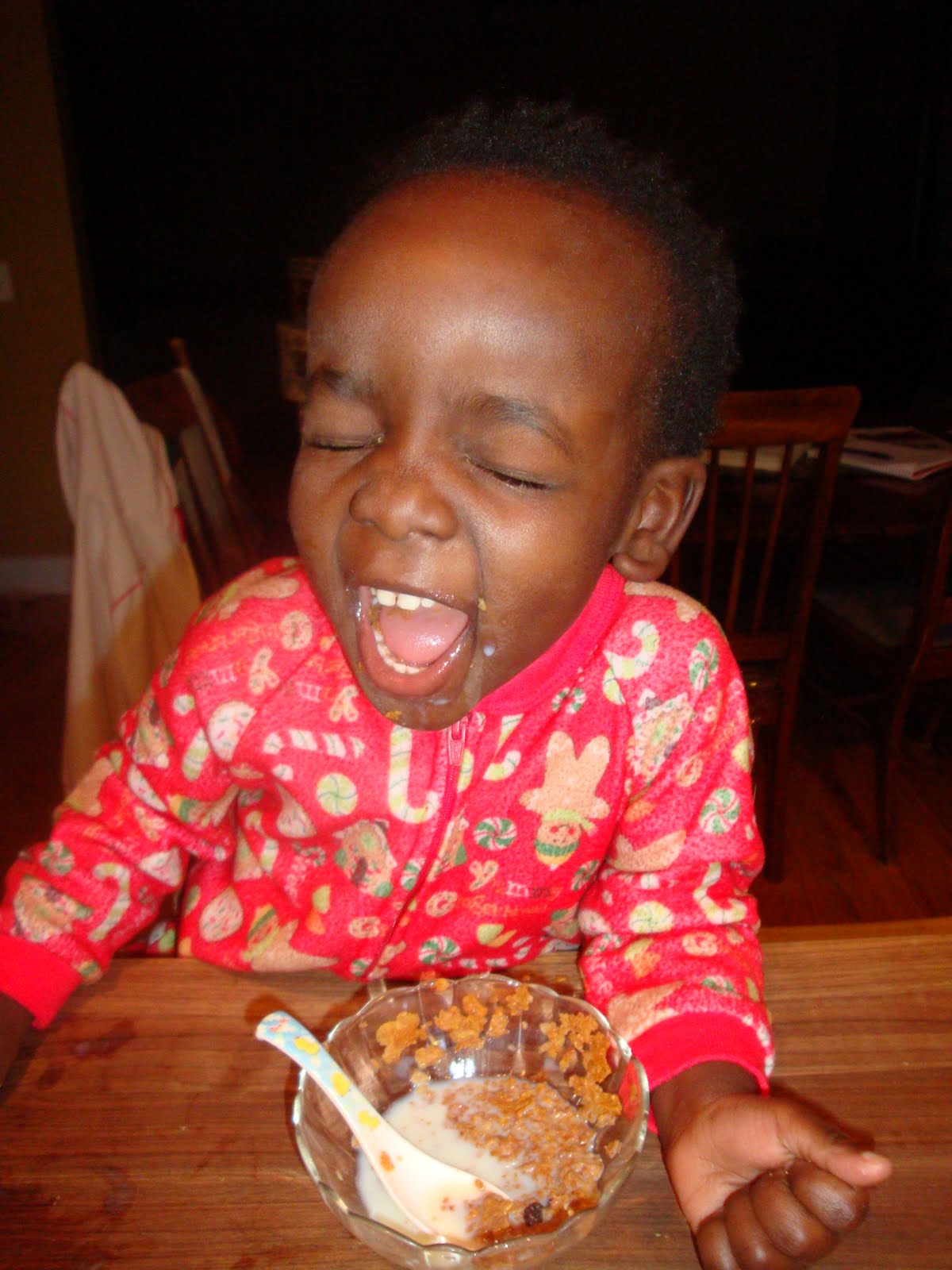 Most of the pictures I take of the kids, Elijah just has a deer in the headlights kind of glaze….which is so not him….he is animated and giggles and laughs…but yesterday morning before anyone else was up this was him….thought you would enjoy our baby treasure….