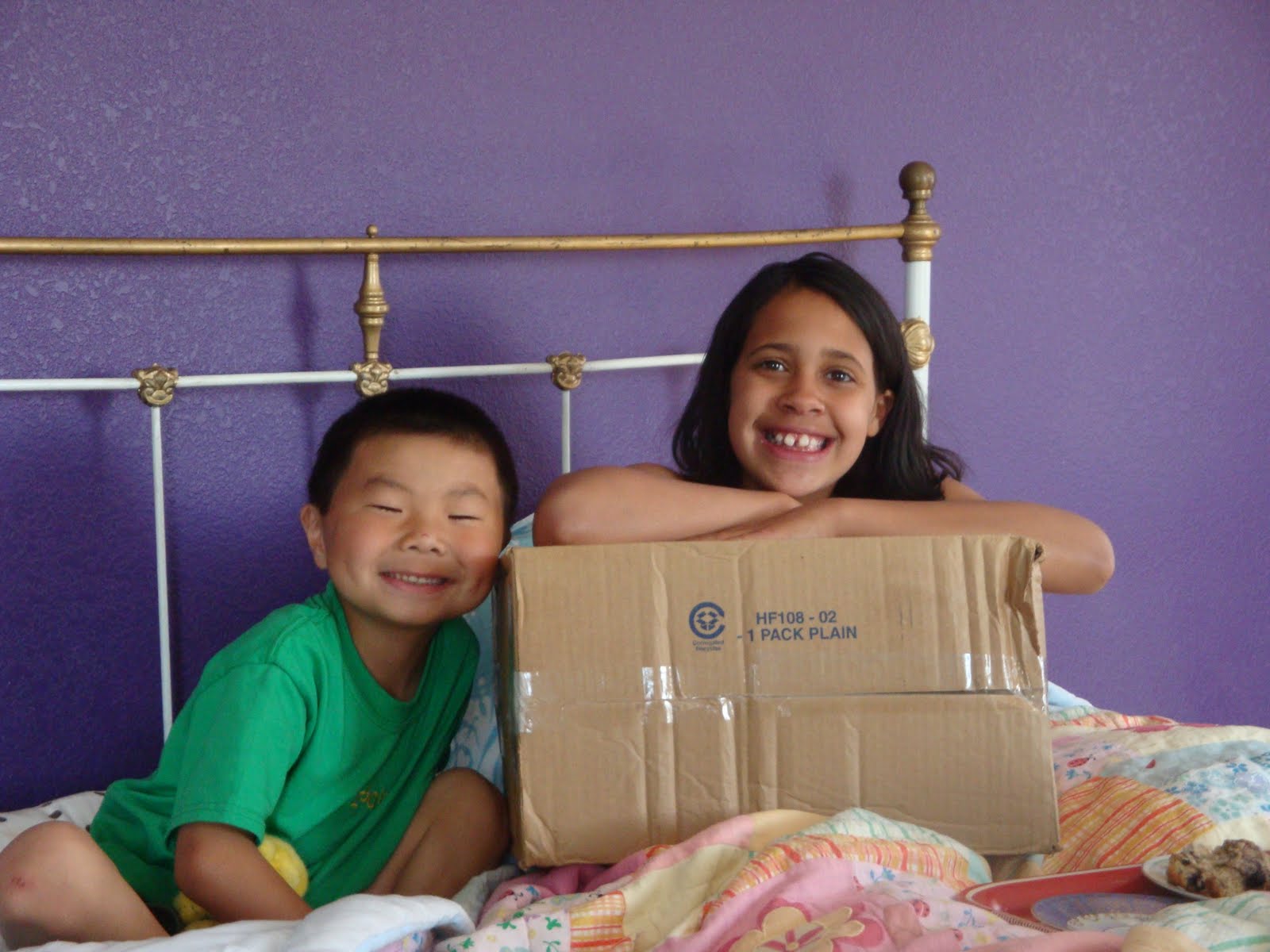 This treasure-girl of ours turned 11 today. The day started with breakfast in bed {blueberry scones were her request and so at 6 something this AM I was heading to the grocery store to get frozen blueberries and they were yummmmmmmy!!}….and while still enjoying the pampering she got to open a package from her birth mom, Cheryl and her family.