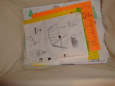 so when we are putting shoes on the socks are not far away….Artwork, sorted, dated and marked….so that someday the kids can see the special things they made….I do not save everything….some is posted on the fridge, some on the walls and the other special things go in this basket so that I can pile it up and eventually it will go in a box in the storage shed…..