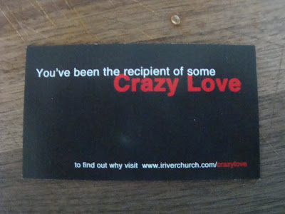 But we really wanted people to know why we are doing what we are doing and so we have a little card made up. That way, should an individual choose to show some Crazy Love, they can hand them a little card and on it is the web address to direct them to this link: River Church – Crazy Love