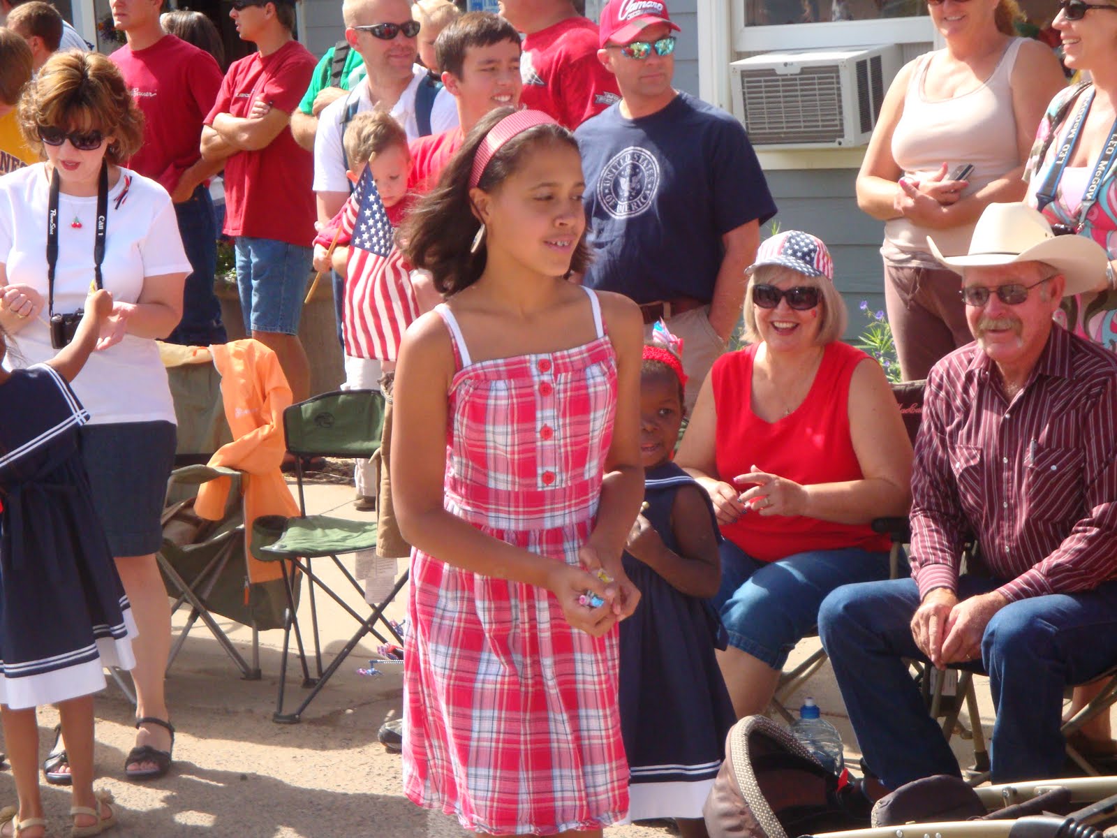 Yesterday we went to a neighboring town to walk in the parade with other Blue Star Moms and their families. Small town America. As our float walked the parade route, we carried pictures of our kids and were greeted by clapping, people standing and showing their appreciation for our sons and daughters serving our country. Most of us parents were brought to tears by their gracious kindness and show of appreciation. Not every city in America even will honor a military person or their family. How thankful we are for this neighboring small town not far from our home.