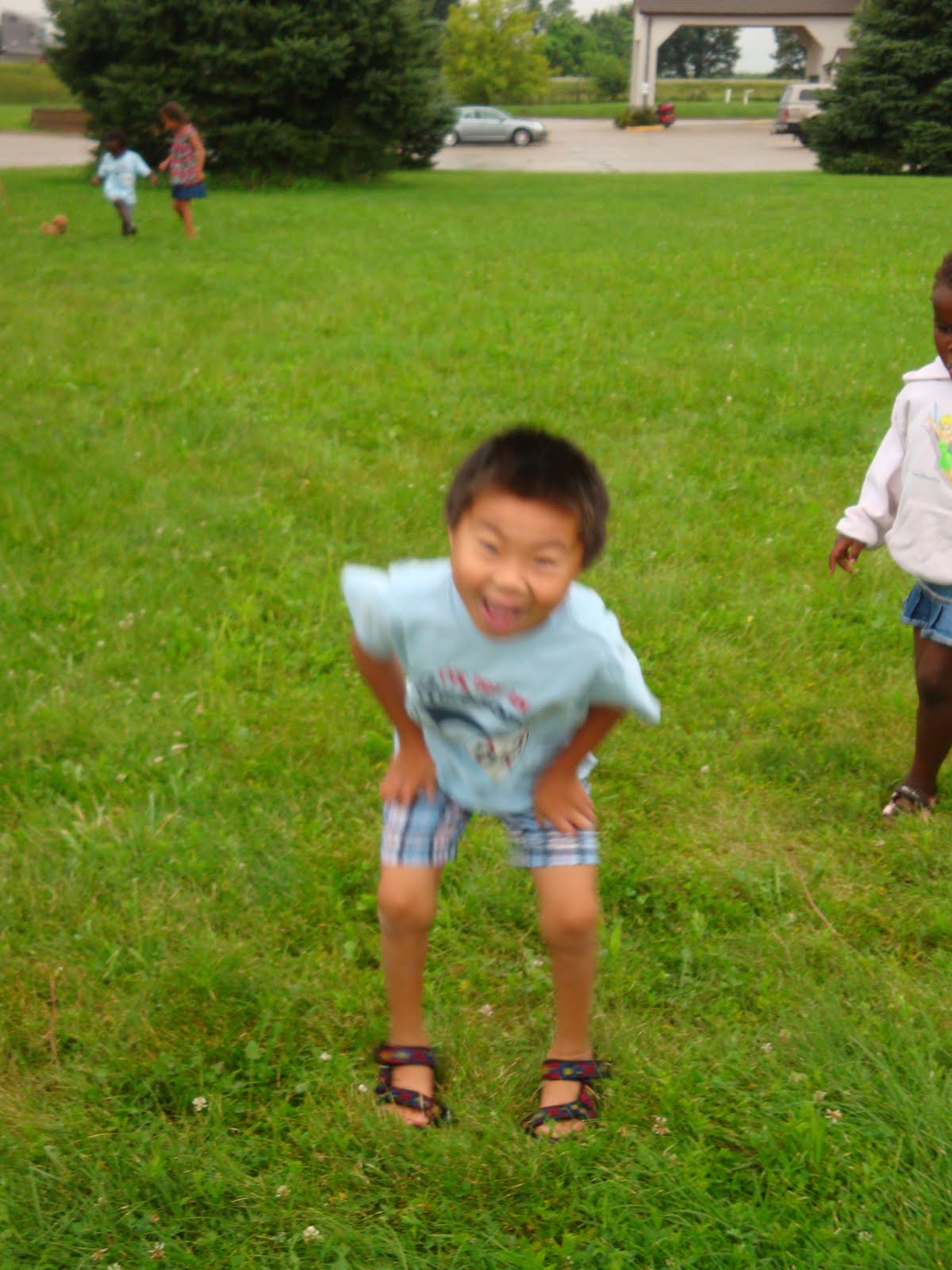 Late yesterday afternoon, just as it quit raining, we stopped for a quick pit stop and there was a large patch of grass nearby…and the kids ran back and forth