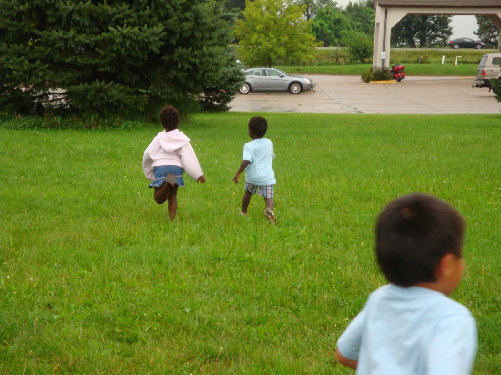 Late yesterday afternoon, just as it quit raining, we stopped for a quick pit stop and there was a large patch of grass nearby…and the kids ran back and forth