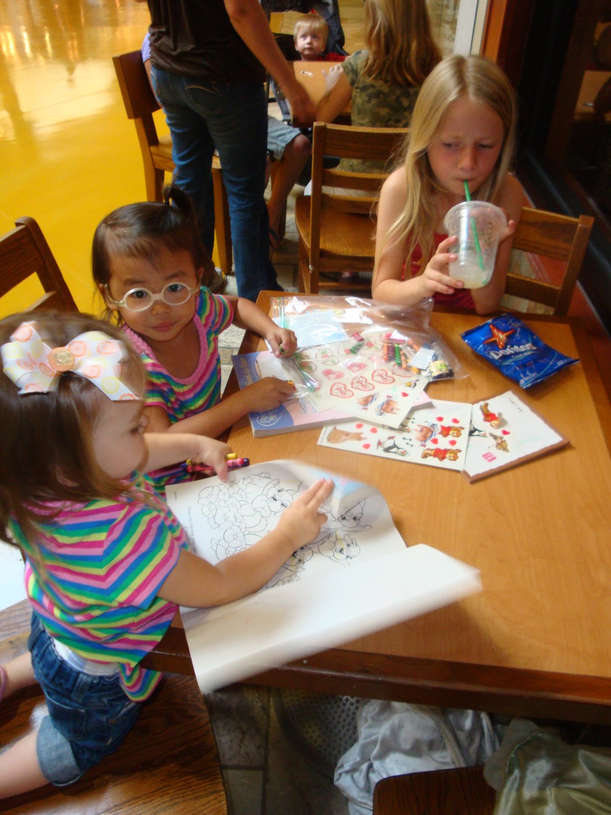 I was perplexed.  Here I was at a mall in Denver having invited anyone who could to come have coffee. So I said, “Did you read on the blog about the invitation to meet bloggy friends for coffee?,” she said, “No, I haven’t been on, I just came from Wyoming to shop with my mom and some of my kids.  I walked past you earlier and thought, ‘that has got to be Linny’ and then I saw your kids {Emma, Elijah and Graham} and knew it was you…I had to say something!”
