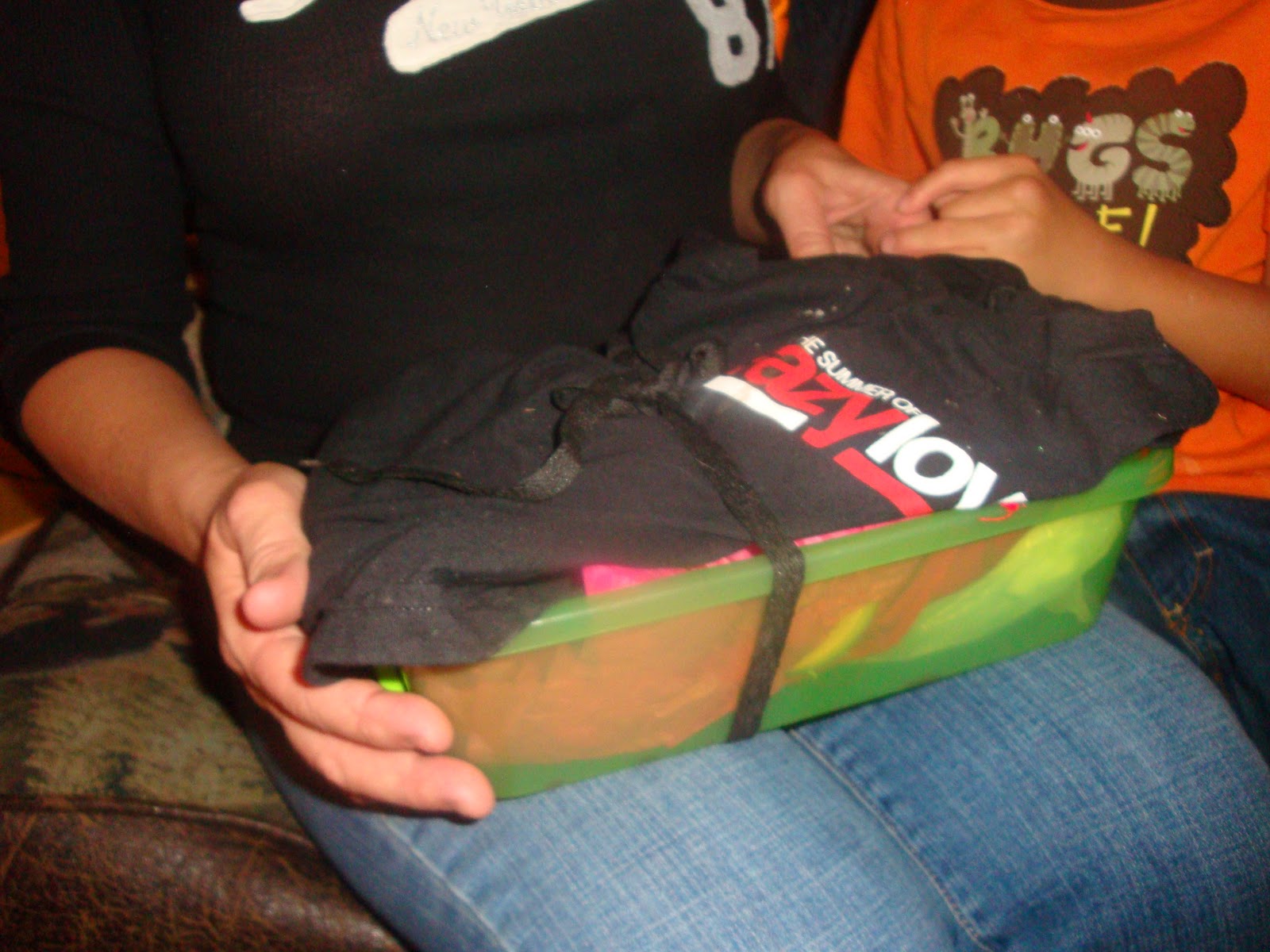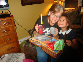 4. You do deserve to have wonderful celebrations! I am loving what the children came up with and their creative packaging! They know exactly what you like … cell phones, comfortable clothes, and because you love the mask (on your little man) he thought you would like that, also. Blessed you are!!