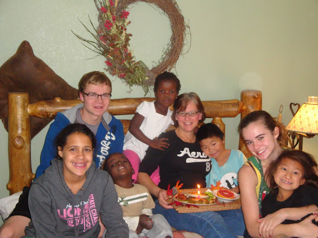 1. Looks like your birthday celebration was worth waiting for. What awesome kids and hubby too! You don't look 52, so yeah, stick with the 25! And it should be "birthday week" so celebrate for a couple more days!