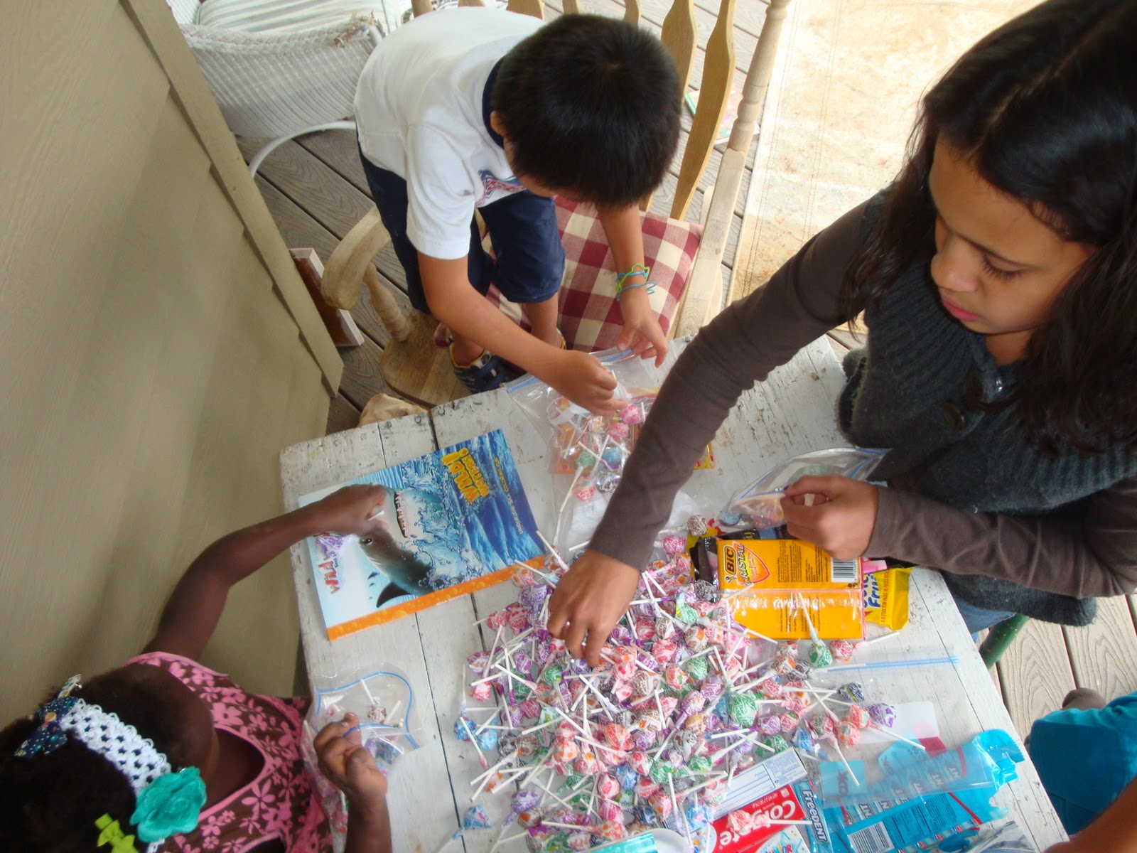 So this particular day we laid it all out and worked to put it all together. We wrote a letter for each box. We put a picture of our family in each as well. We told the recipients that we were praying for them.
