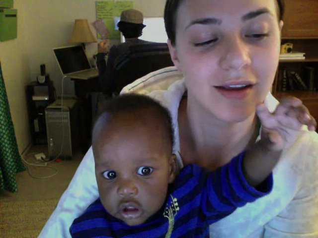 Cute-Cute-Cute!! Isn't it great to connect with loved ones long distance? Skype has been a blessing for our family. Finn is just precious and I can't wait to see you and him together in a photo SOON!! (: