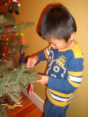Sweet baby boy….he was so careful as he hung each ornament up…