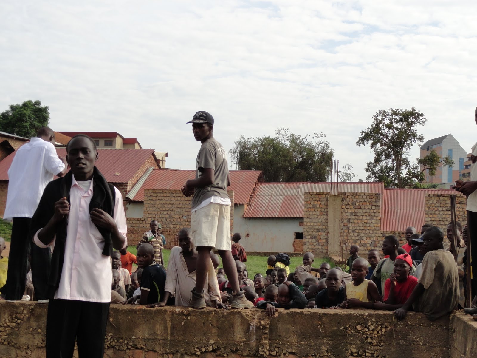 Emmy and I were in the second load of ladies and the first bunch had already started to get the area ready.  As we got to the slums there were crowds of street boys anxiously waiting – on roofs of the shacks that line the ‘road’, in the streets and even running beside the car!