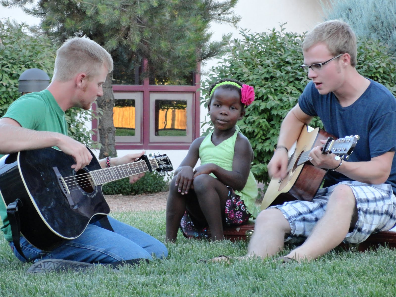 the boys sat and played for a long while