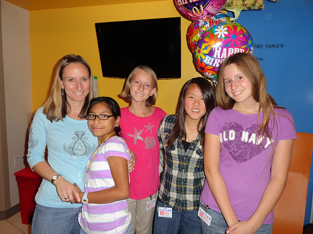 Later on my birthday as Dw was leaving to take the kids home, a group arrived.  A mom, Rhonda, and her three daughters and a young family friend.  All bloggy friends coming to help me celebrate my birthday!  And they came bearing beautiful gifts!