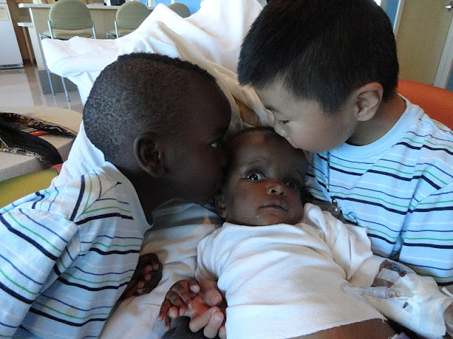 Before the two surgeries last week, the kids came up to hang out so they could get to know their baby sister….thought you might like to see just how sweet they all looked….