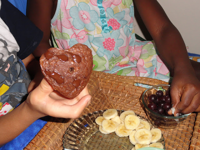 Chocolate chocolate chip muffin, so I found a recipe on the internet and doctored it up with a little fiber {our colons all thanked us}…
