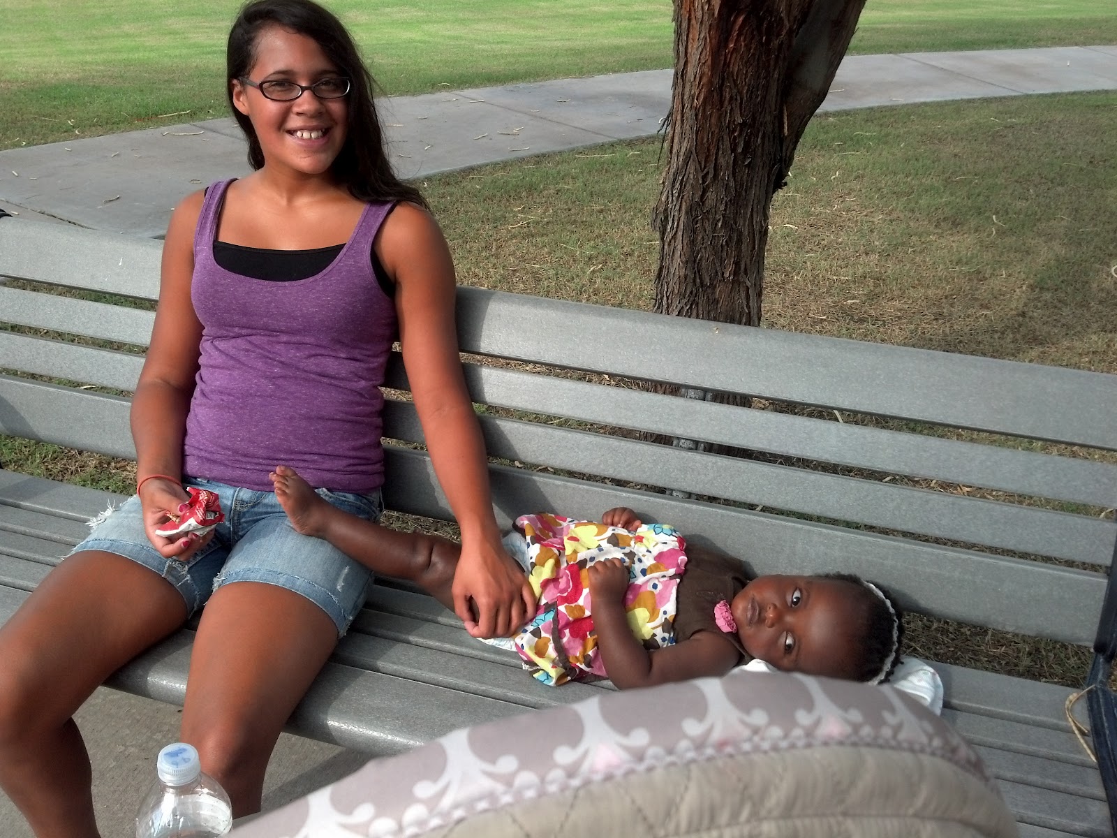 5. Thank you for sharing the not so fairy tale trip to the park. Loved the "hair bling" part. I have often been asked if I am the grandma and want to say "not everyone is a teenage mom" but never do. I need to brush up on my come backs, a little boy said I could not be my daughters mother yesterday because she had brown skin. Nice welcome to the kindergarden luch room. Keep planning those outings, the next one will be better, especially if it includes a pool:-)