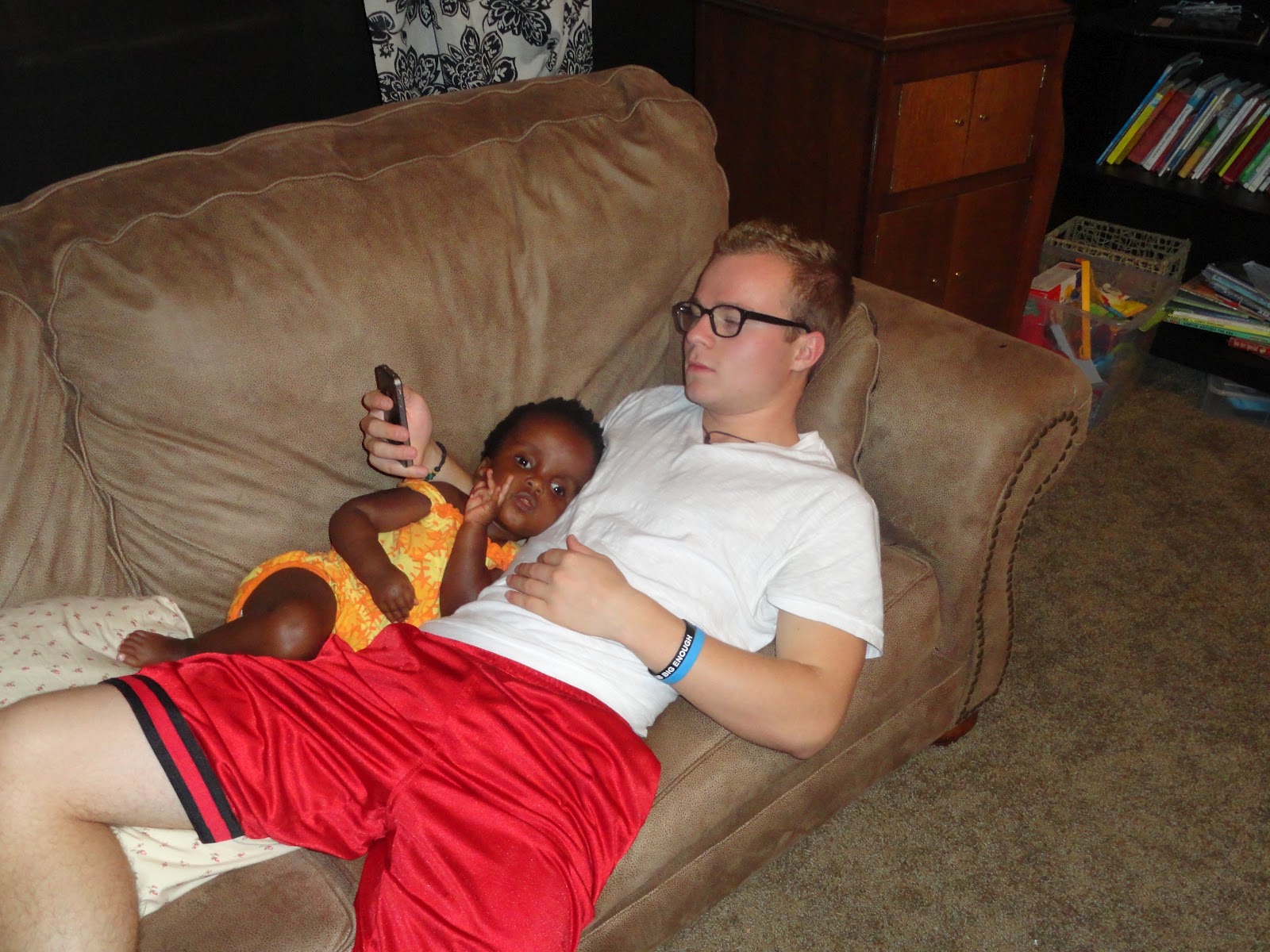 Big brother, who had just gotten home from a long, long day of work, opted to snuggle with Rubylicious while the impromptu party was happening in the pool.