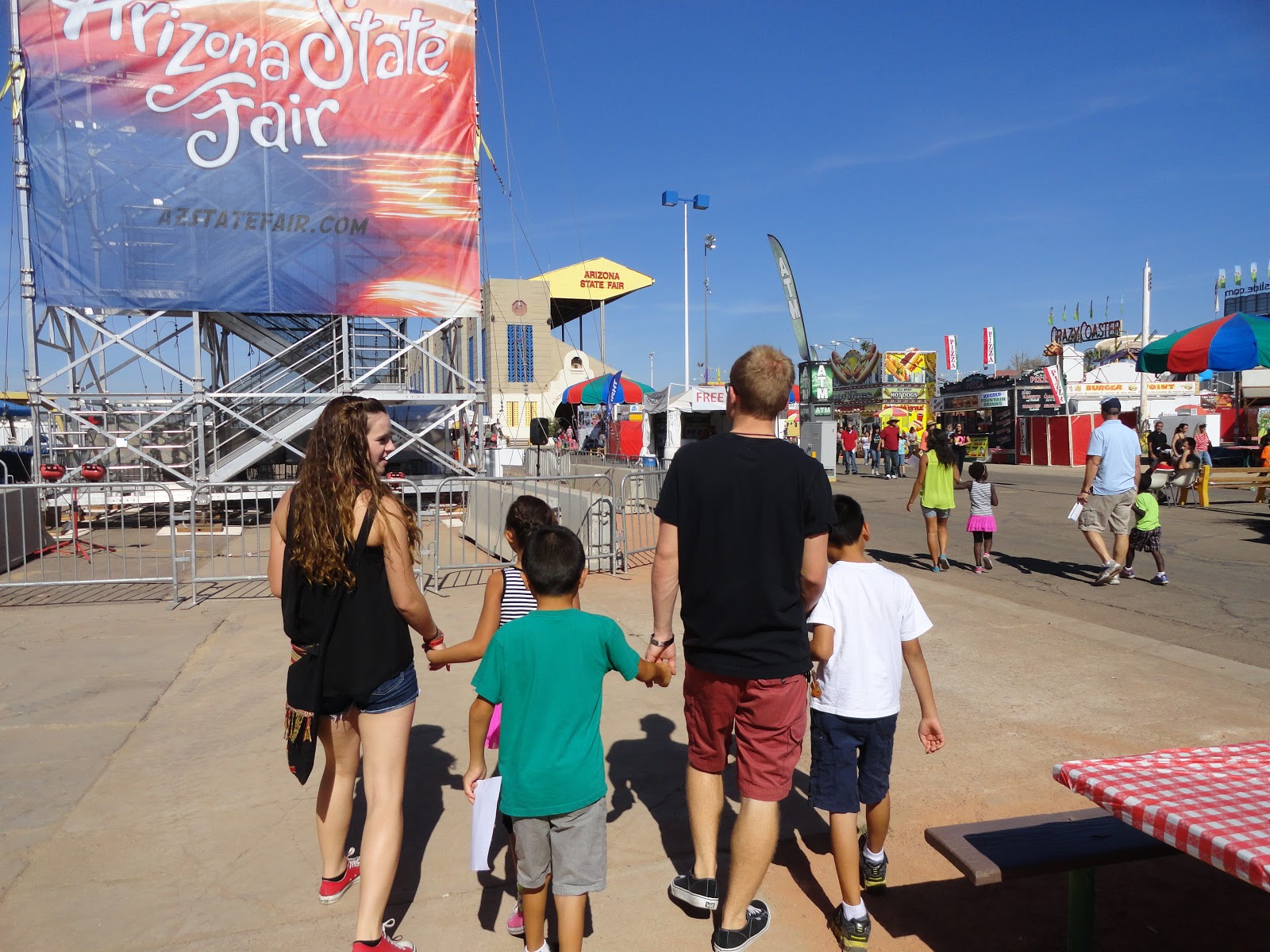The other day we were able to head to our state fair…{Dw found on the AZ Fair website that one specific day they allowed anyone coming in between noon and 1:00pm to enter for free, how cool is that?  So off to the fair we went!}