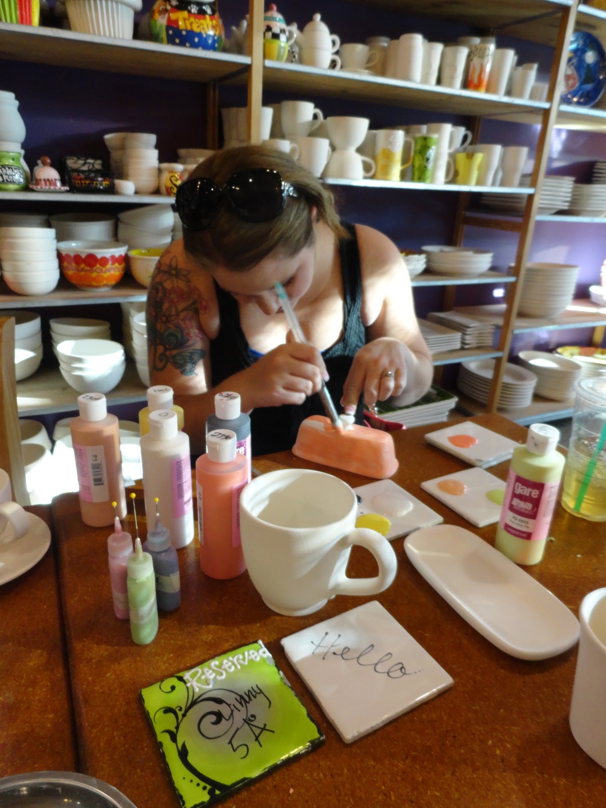 I had never been so I thought, “Okay, whatever.  It’s Emma’s idea, so we’ll have some fun, since Emma will soon be leaving and painting pottery has been on her “bucket list” before she leaves.”