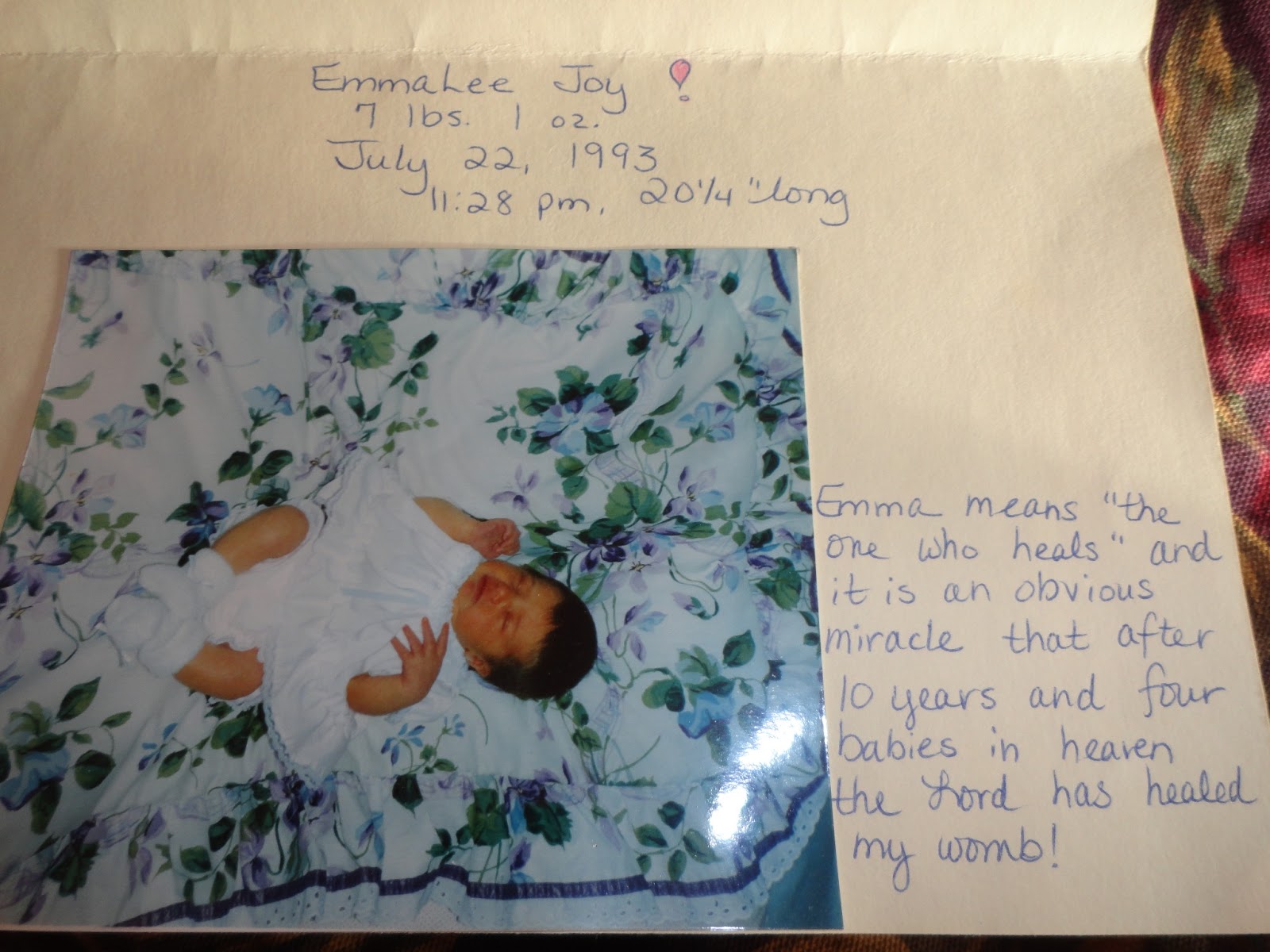 Somehow the Lord knew that finding Emma’s announcement would bring me such tender pleasure…