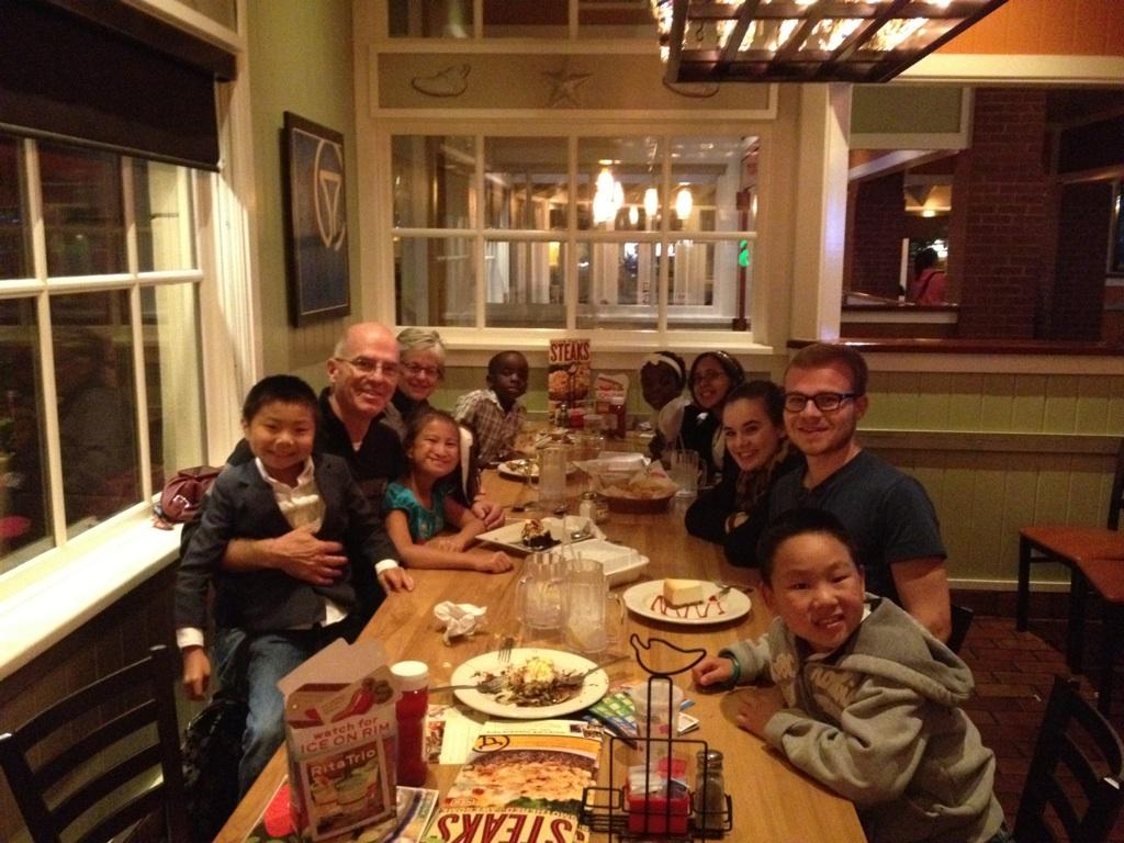 In the course of ordering, the waitress and waiter {they gave us two – ha!} both clearly thought the kids were extra sweet.  We shared a bit of our story and the waitress shared how she had always loved the idea of adoption.   A blessed time!
