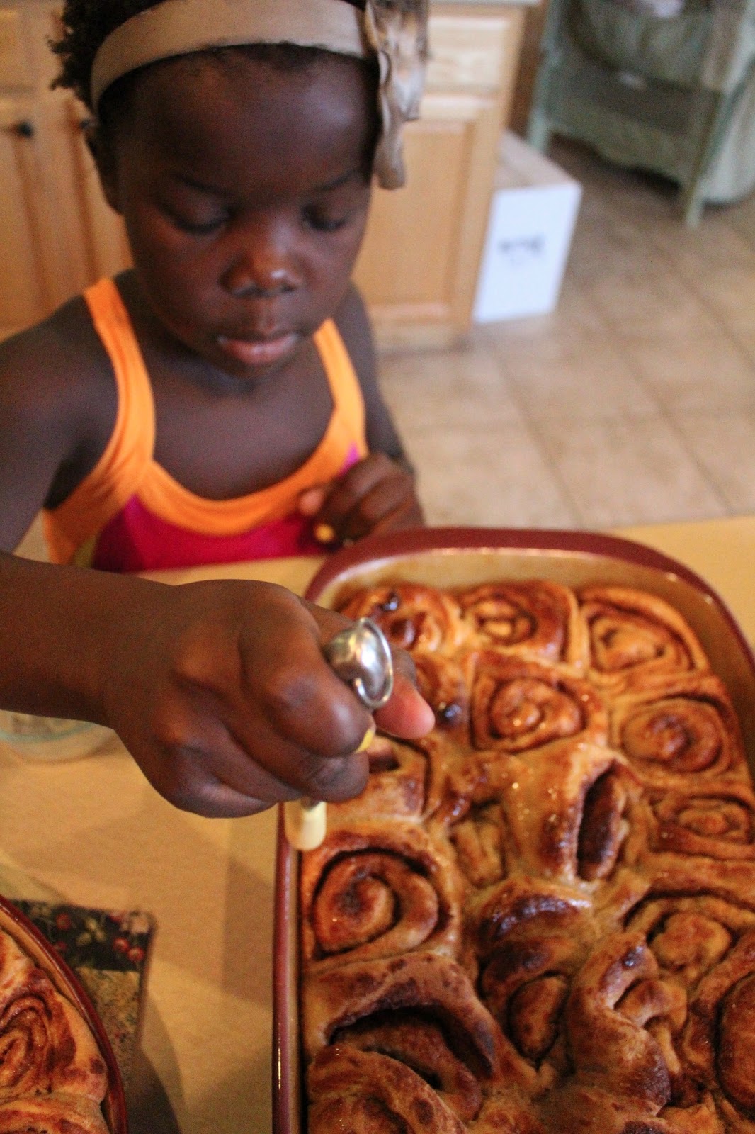 Oh wow! That seems like a LOT of work! I so want to try them though… I could've sworn Ruby's expression was sayin' "seriously, mom….you're giving away the 'super-secret-scrumptious-Saunders cinammon roll' recipe? How could you?". LOL. She's such a doll! Her pictures ALWAYS make me smile. Thanks for sharing!!