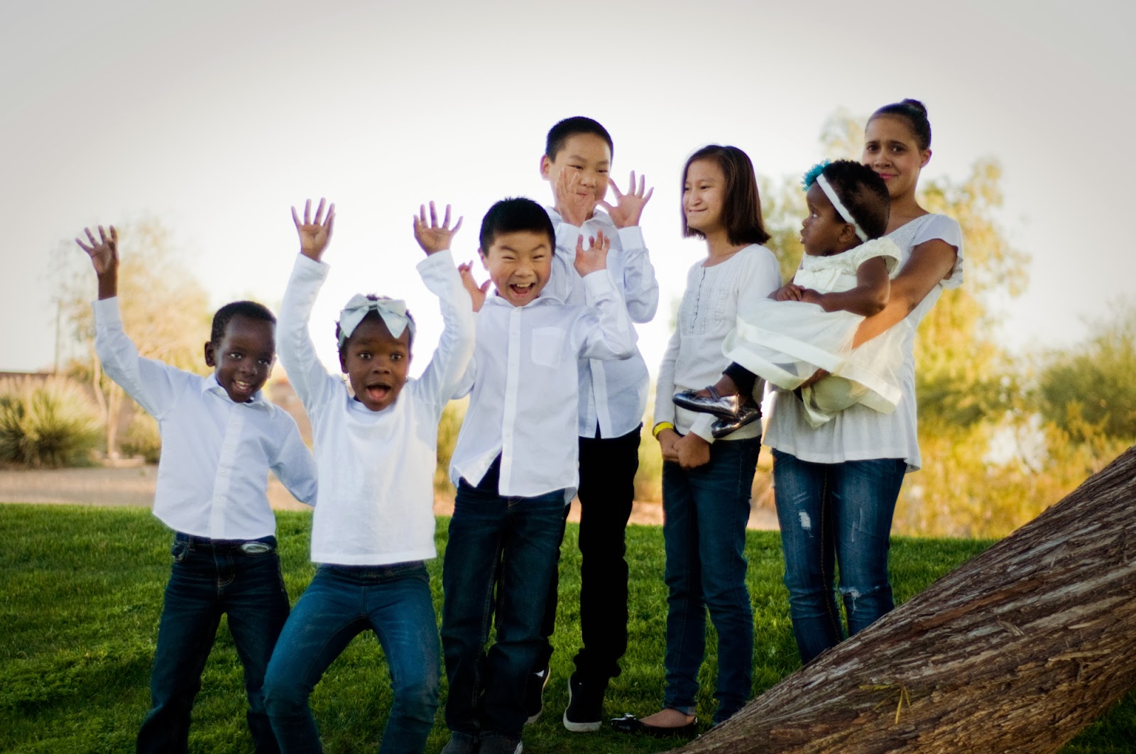 5. Just LOVE those loving brother photos! Nehemiah's face in the "Smush Elijah's Head" photo is great. His face says, "Isaiah are you sure this is ok? Well, then, ok–I'm gonna do my part!" And Liberty's face in the scary faces photo is another great one "Really, mom? Scary? I don't think so. I'll just stand here and hold sweet Ruby." Thanks for sharing your photos with us. Can't wait to see one with everyone someday! Congrats to Graham and Savannah–she's already been a member of the family for a while–this just makes it officially official!